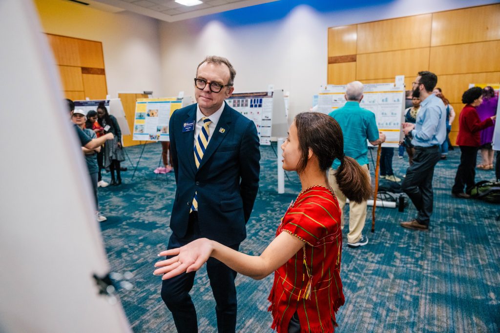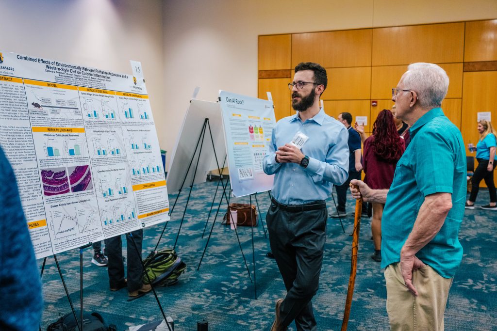 This event is designed to showcase graduate research and creative work to a range of non-specialized audiences. It is not intended to replicate an academic conference in a specific discipline, as students present their work to judges and individuals not in their field of study.